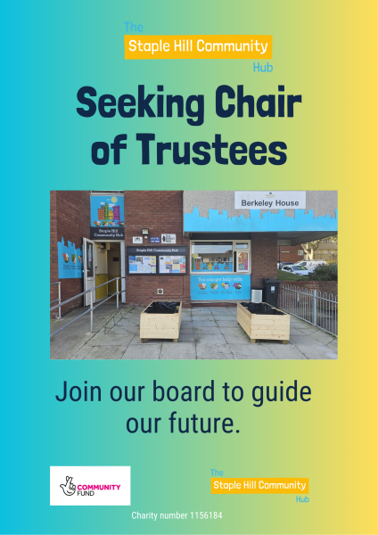 Staple Hill Community Hub is a well established local charity that has been serving the community since 2007. we are looking for an experienced and committed individual to become the chair of Trustees. You will provide leadership to our board and work closely with our staff team.