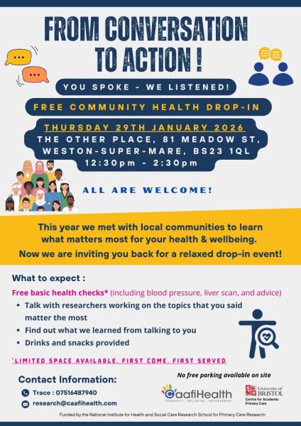 Come along for a relaxed morning of friendly conversations, *free health checks* (first come, first served), *refreshments!* Men and Women welcome.