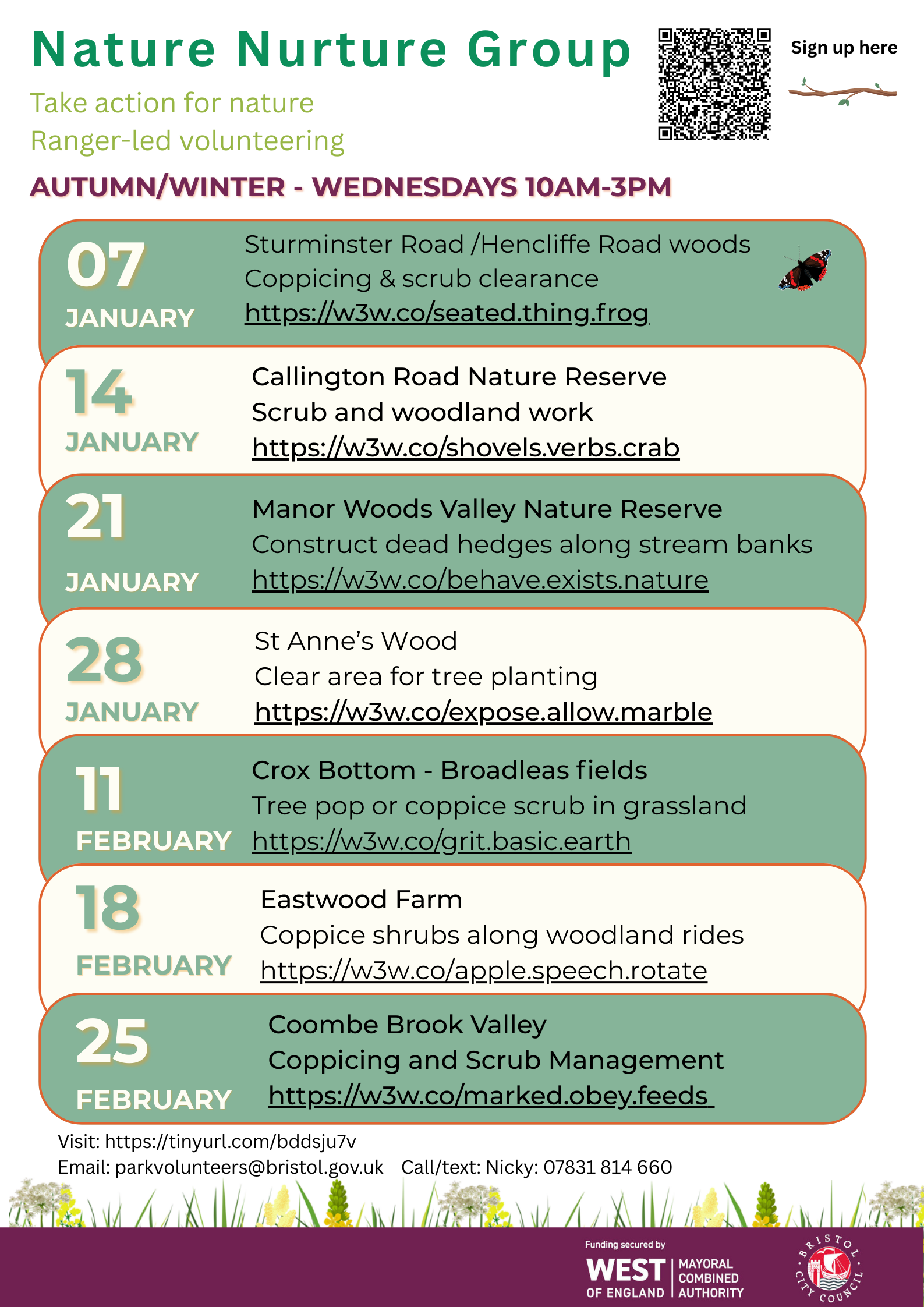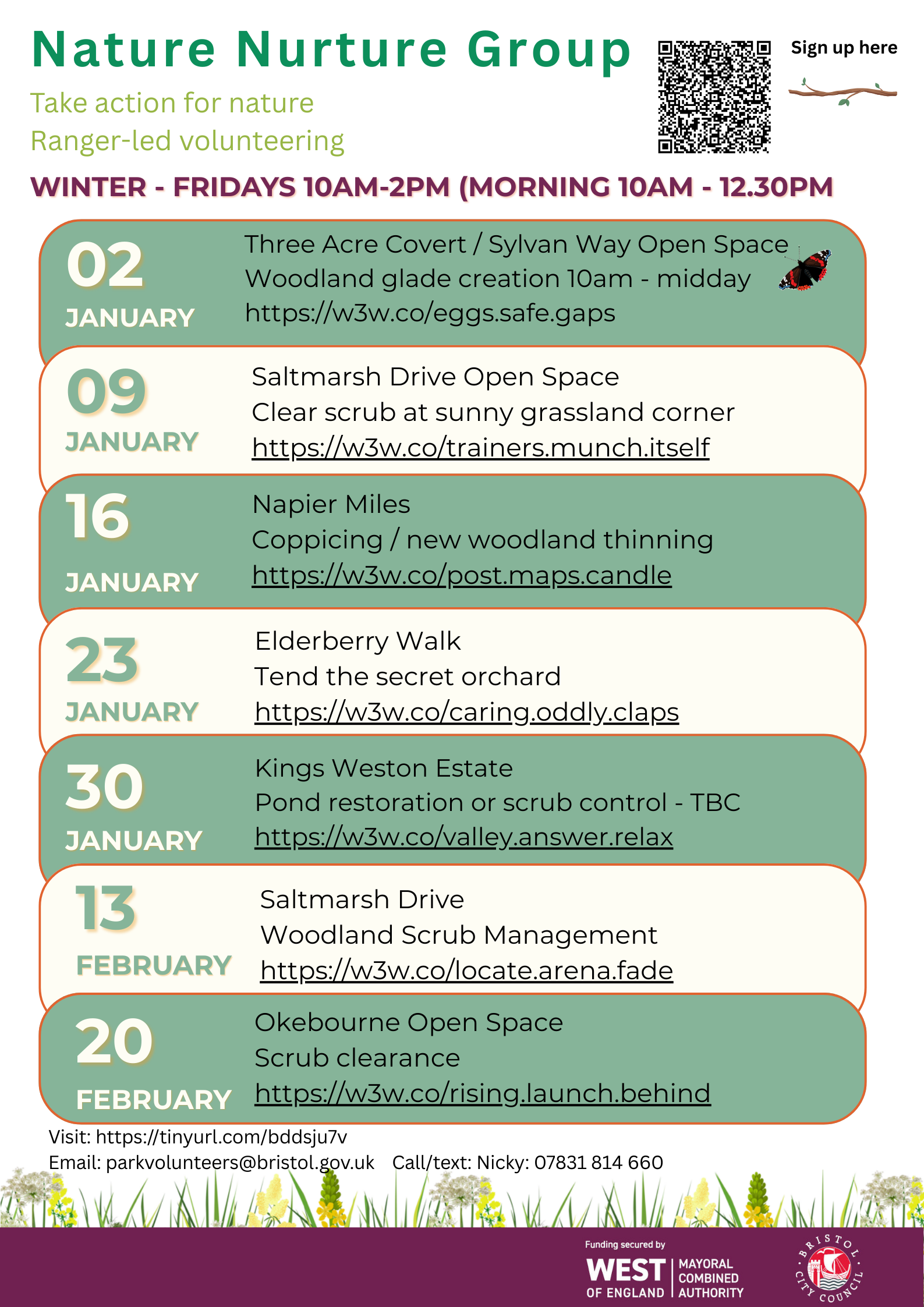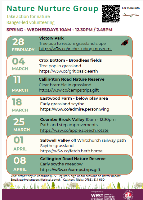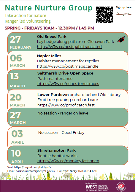 If you have any questions please contact: parkvolunteers@bristol.gov.uk or call 07823 719 723