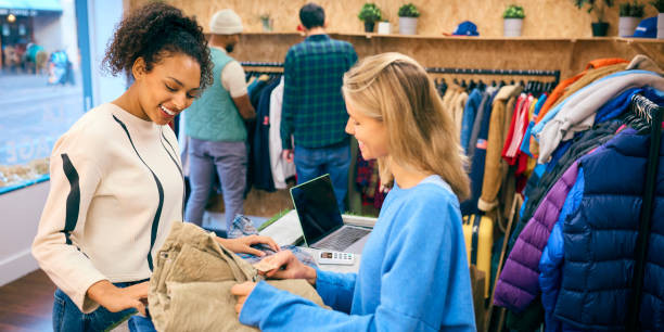 - Serving customers at the till